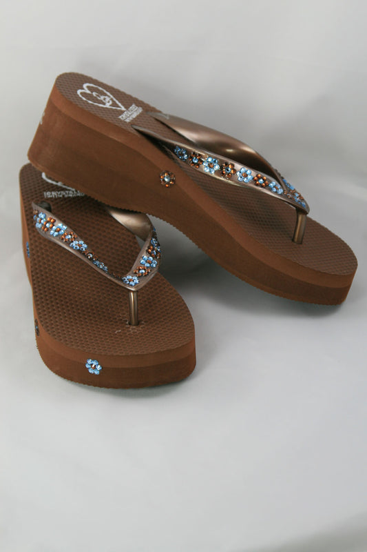 High Night Sandal in Chocolate with aqua and light colorado flowers