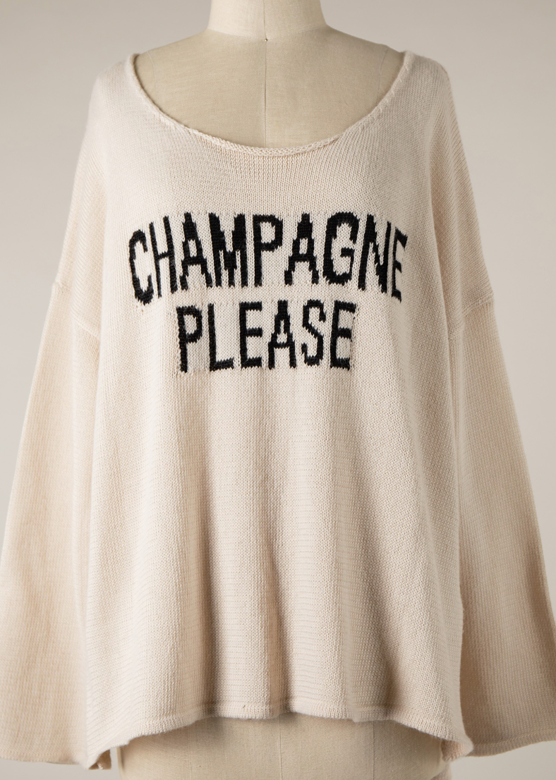 The "Champagne Please" Lightweight Knit Sweater features side slits and